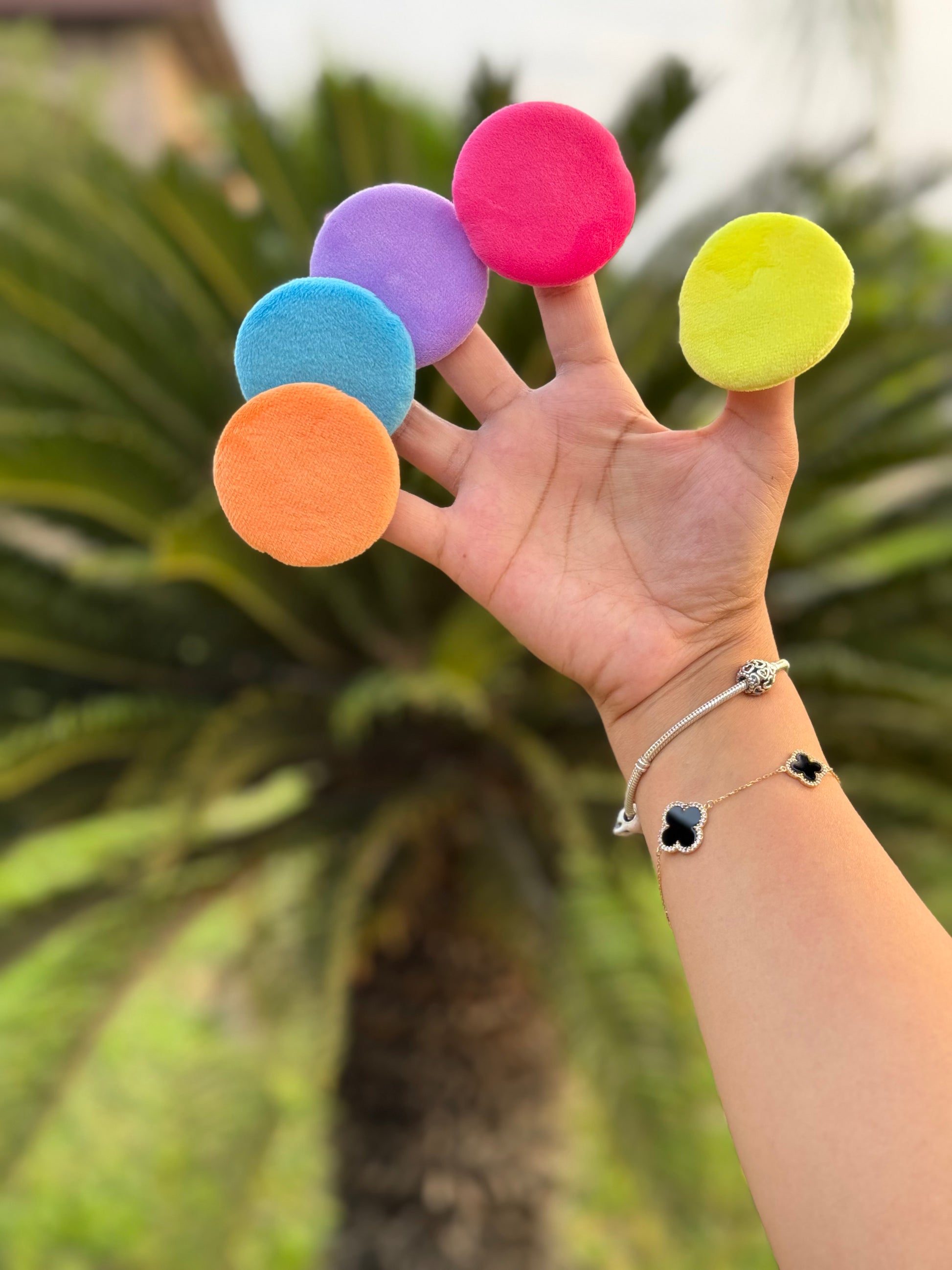 Medium puff : great to apply powder, baking powders, bronzer, wear on your fingers to use as protection pad when applying eye makeup